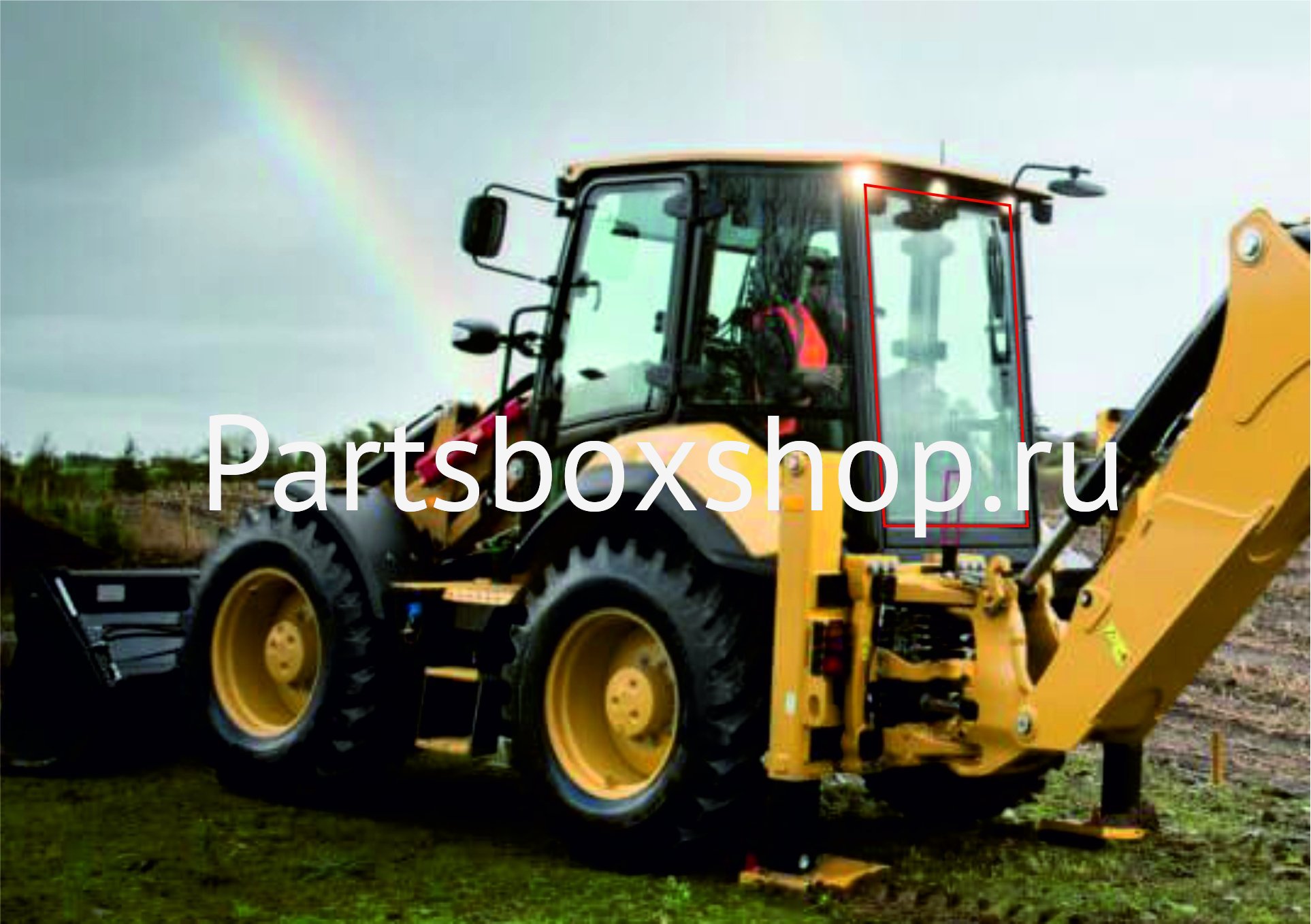 Стекло заднее ТЗ (Терма зелёное) 2 отверстия для экскаватора погрузчика Caterpillar F2 серии с 2017 года.